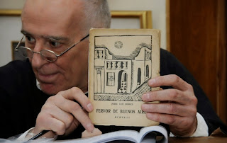 Jorge Luis Borges. El primero es un ejemplar de la primera edición de "Fervor